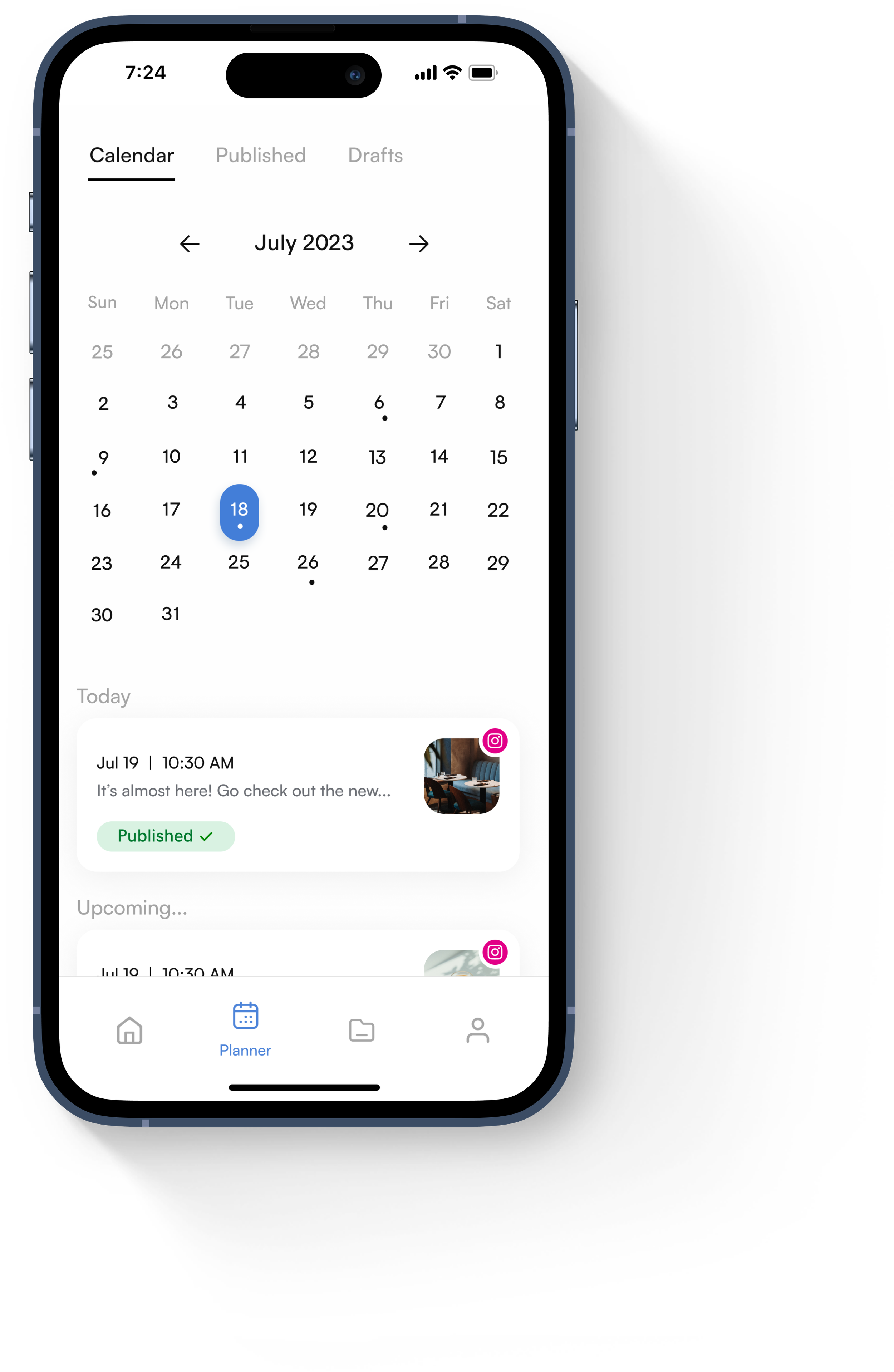 From this [calendar] initial screen, the business owner can plan a time to post, by choosing a specific date + time. This is perfect for helping content creators stay on track with their algorithm and flexibility to manage and view any upcoming existing scheduled posts from one this calendar screen.